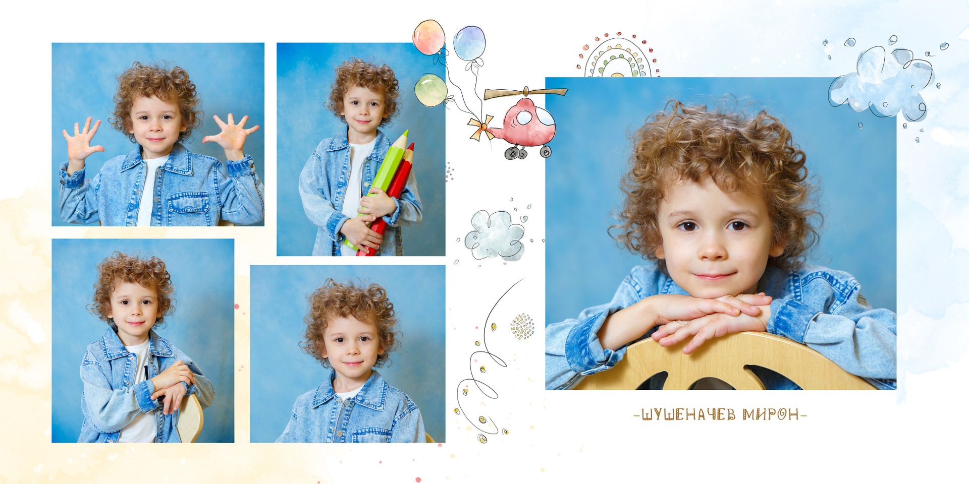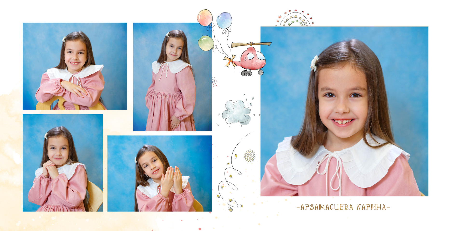 1-й разворот — 5 портретов ребенка